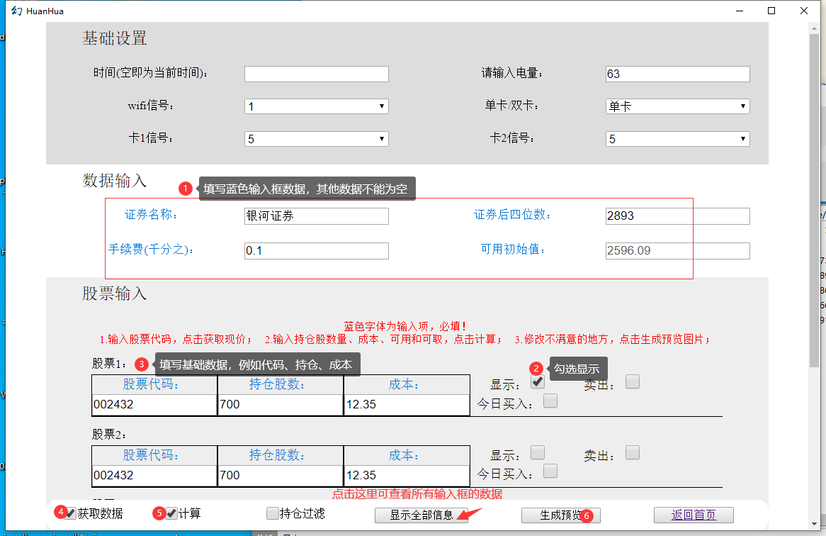 3、证券商、账号可任意修改,本软件调用新浪的免费数据接口,部分股票数据获取有一定延迟;