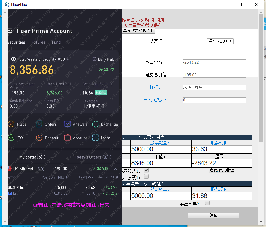 1.支持最新富途、老虎证券苹果、安卓界面,897P/720P高清截图生成。
